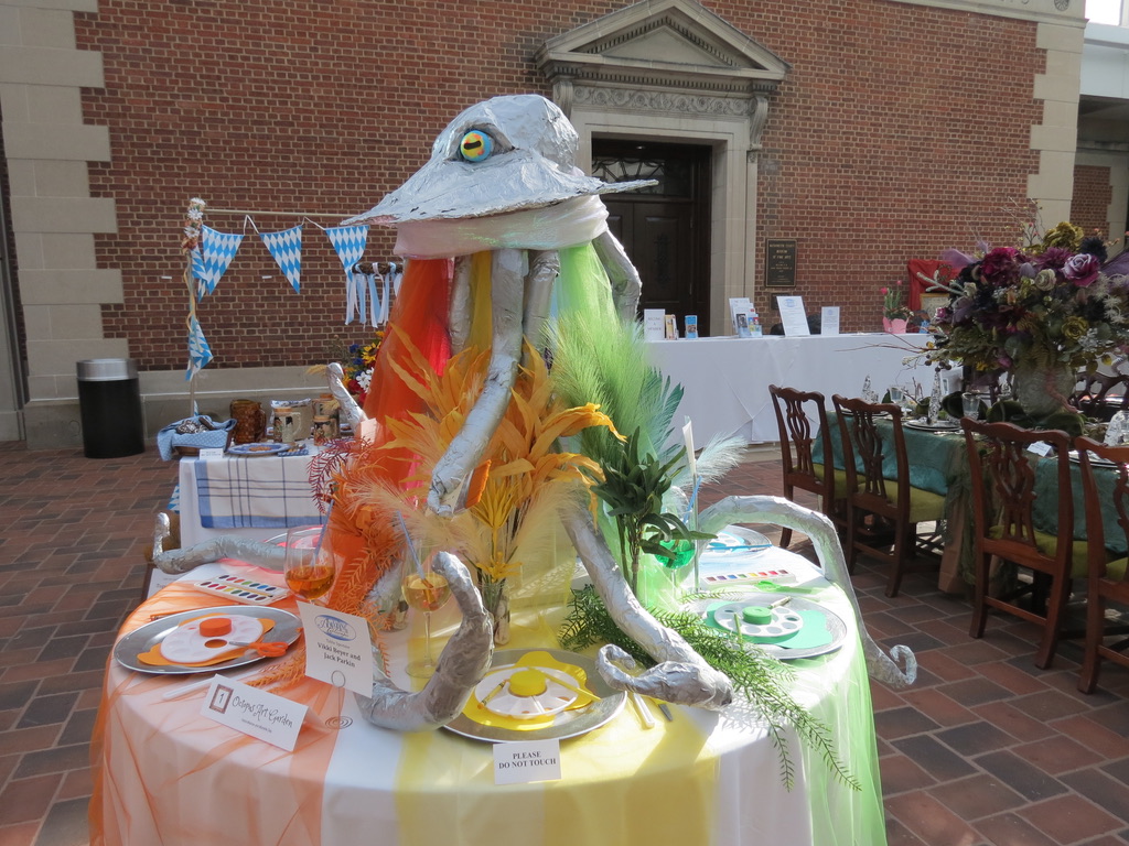 Cindy's tablescape is another welded sculpture that will go into her garden after this week. . .